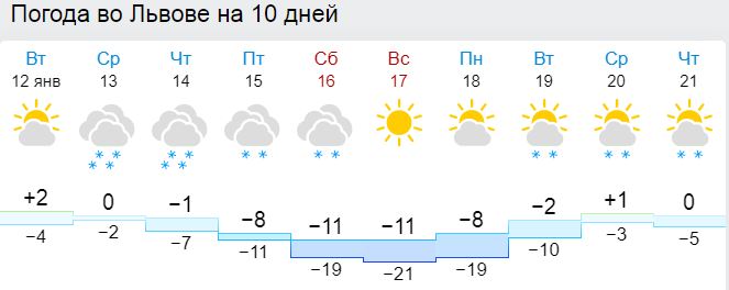 Во Львове в крещенскую ночь термометр покажет -19, днем до -2. Может срываться снег. С 20 января потеплеет до +1 днем и до -3 ночью.