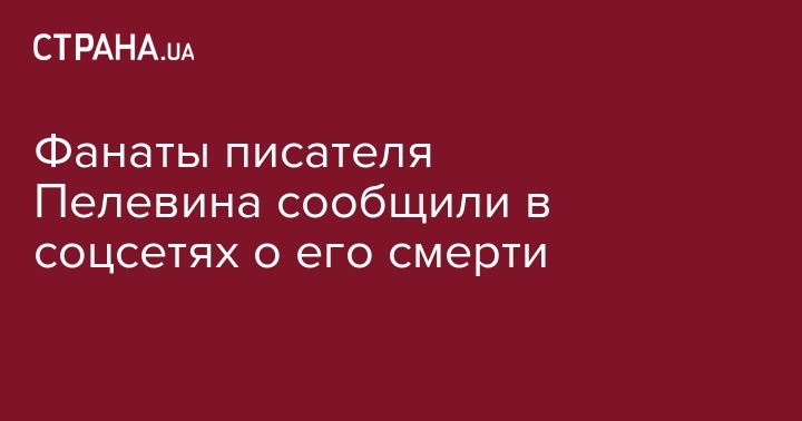 Поклонники российского писателя Виктора Пелевина сообщили о его смерти в крупнейшем русскоязычном фанатском сообществе Пелевина в Facebook.