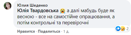 "3 класс. Все задания в Google-класс, вайбер. Классная и домашняя. Вынуждены были сами все читать, смотреть видео, я была за всех учителей. Второй ребенок 4 лет тынялся 4-5 часов пока мы "делали уроки". Дурдом, а не обучение, никому не пожелаю", – написала Ирина Марухно.