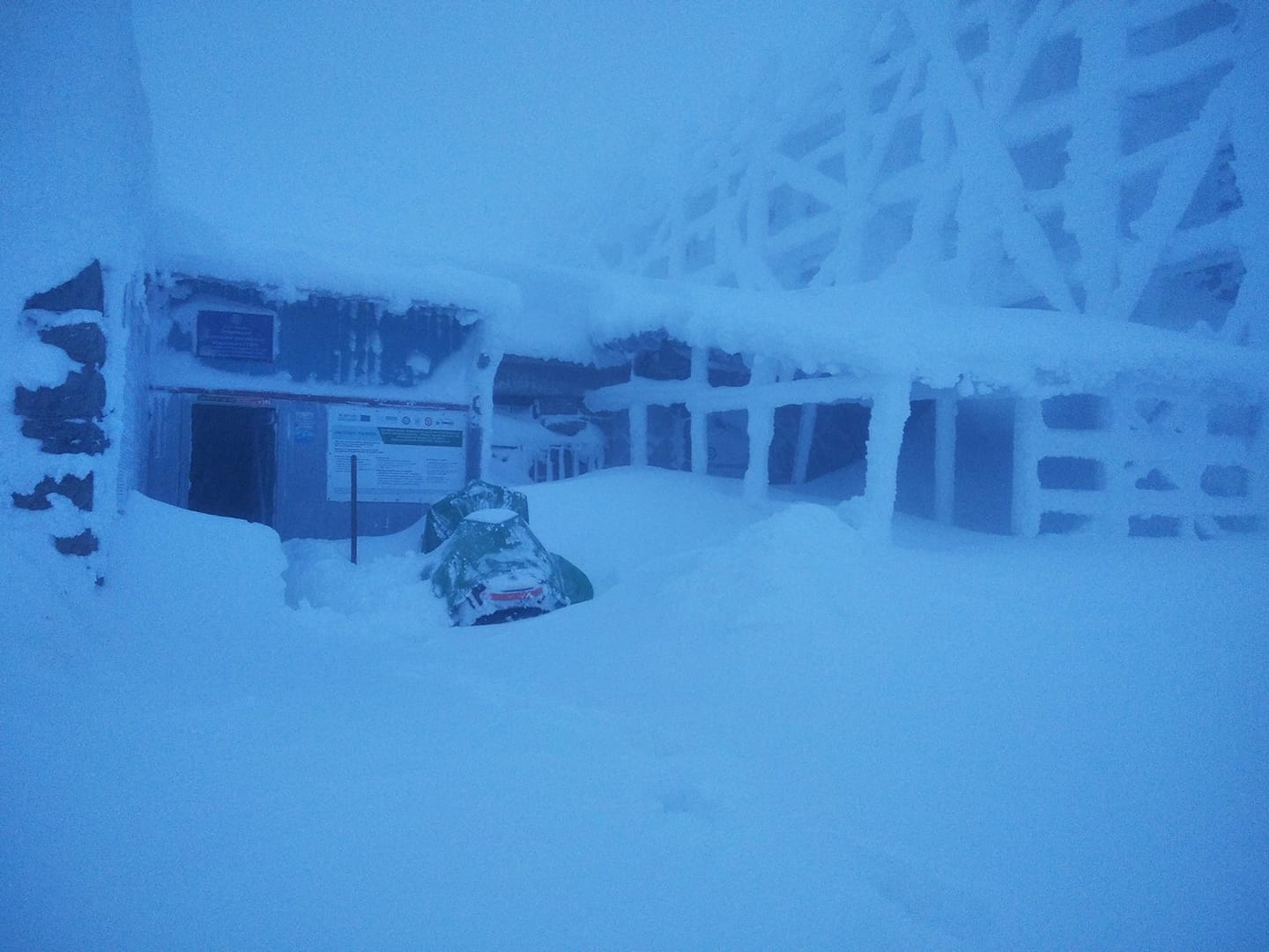 По состоянию на сегодняшнее утро горе Поп Иван Черногорский облачно, видимость ограничена до 30 метров. Метель. Ветер южный, юго-западный 7-8 м/с. Температура воздуха -13 °С.