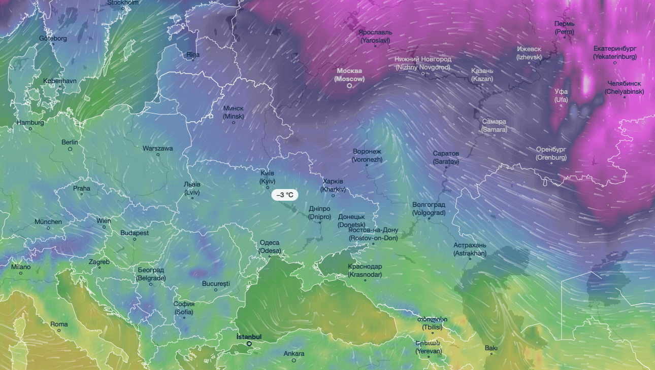 11:36 Холодные воздушные массы со снегом на Украину надвигаются с севера.