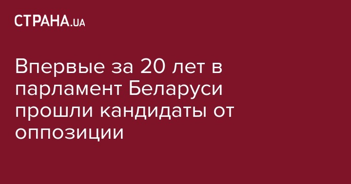 На выборах в Нацсобрание, нижнюю палату парламента Белоруссии, впервые за 20 лет прошли представители оппозиции. Об этом сообщает Reuters.