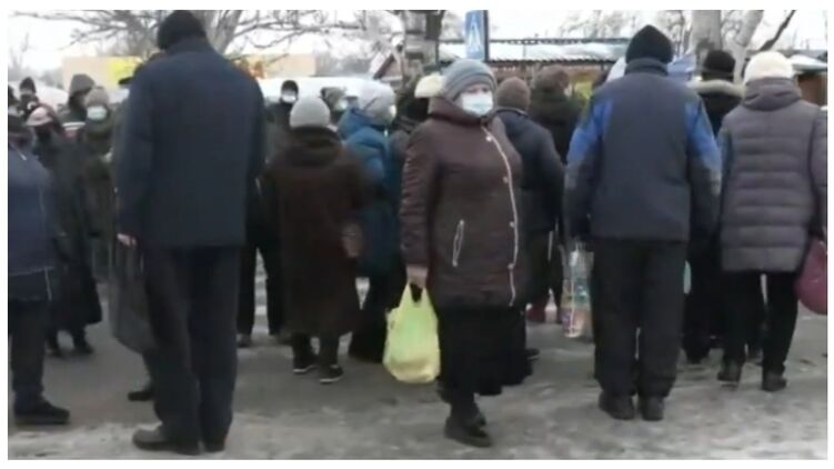 В знак протеста люди перекрыли дорогу в Херсонской области. Фото: скриншот с видео