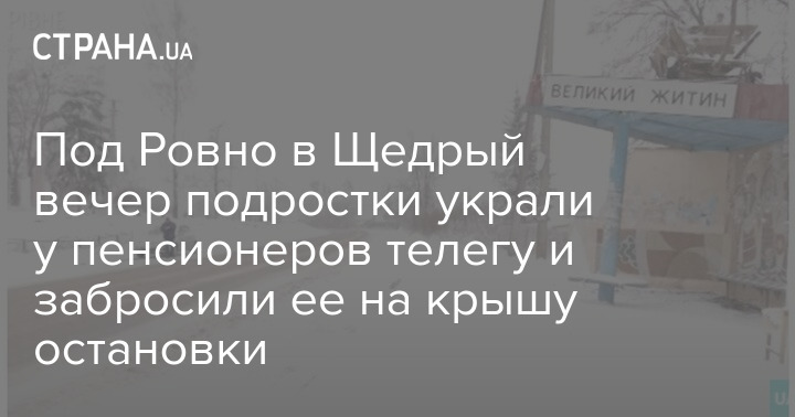 В селе Житин под Ровно в Щедрый вечер, 13 января, подростки украли со двора пенсионеров телегу и забросили ее на крышу автобусной остановки. Утром новоявленный "арт-объект" стал привлекать внимание всех, кто проходил или проезжал мимо. Люди смеялись и фотографировались на фоне остановки с телегой на крыше. Не до смеха было только хозяевам украденного воза. Пенсионеры обратились в полицию.