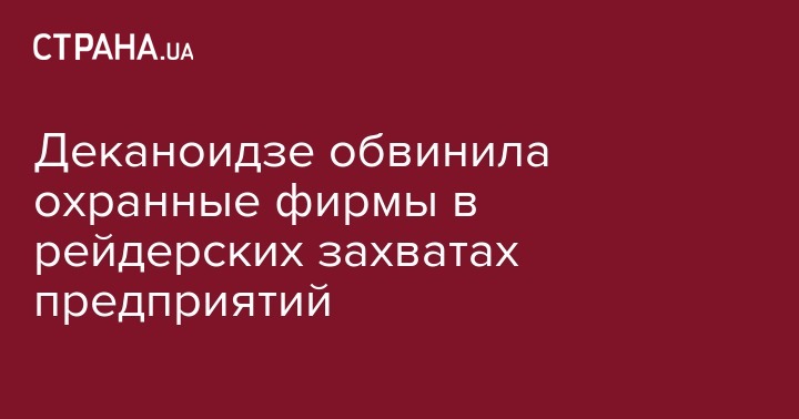 Глава Нацполиции Украины Хатия Деканоидзе заявила, что многие охранные фирмы в Украине занимаются рейдерством. Об этом сообщает "Укринформ".