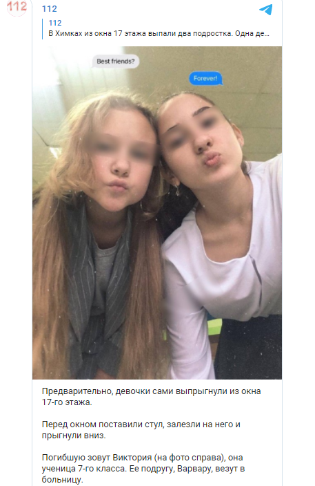 Как рассказала медикам скорой выжившая девочка, они с подругой выпали из с балкона случайно, когда встали на стулья, чтобы посмотреть на город. Однако, не исключена версия, что девочки сами прыгнули вниз.