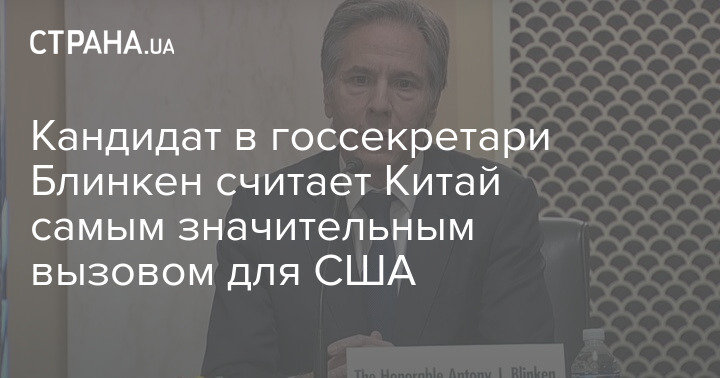 В США кандидат на пост госсекретаря Энтони Блинкен заявил, что Китай представляет наиболее значительный вызов для США из всех государств.
