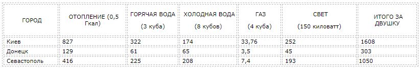 За двухкомнатную квартиру на семью из 3-4 человек, коммуналка и свет дороже всего выйдут в Киеве - более полутора тысяч гривен.