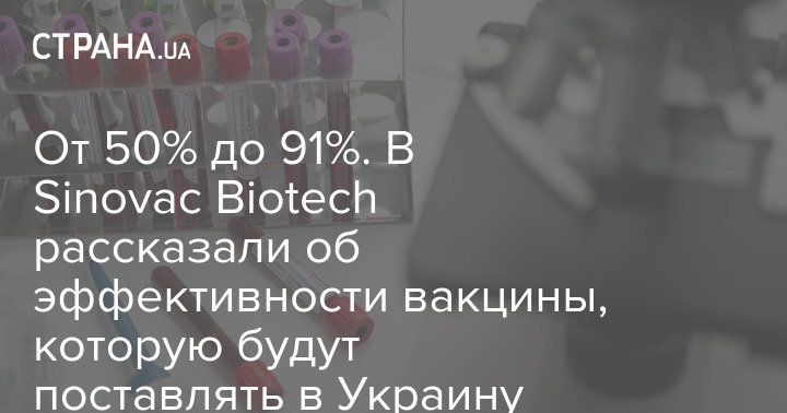 В китайской компании Sinovac Biotech, с которой Украина подписала контракт о поставках вакцины от коронавируса, рассказали о результатах клинических испытаний препарата CoronaVac, которые проводились в трех странах. Самый высокий результат зафиксировали в Турции, где эффективность составила 91,25%, а самый низкий - в Бразилии с показателем в 50,38%.