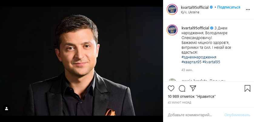 Студия "Квартал 95", которую ранее возглавлял Зеленский, тоже поздравила его с днем рождения.
