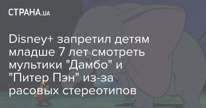 Disney+ запретил детям младше 7 лет смотреть мультики "Дамбо" и "Питер Пэн" из-за расовых стереотипов