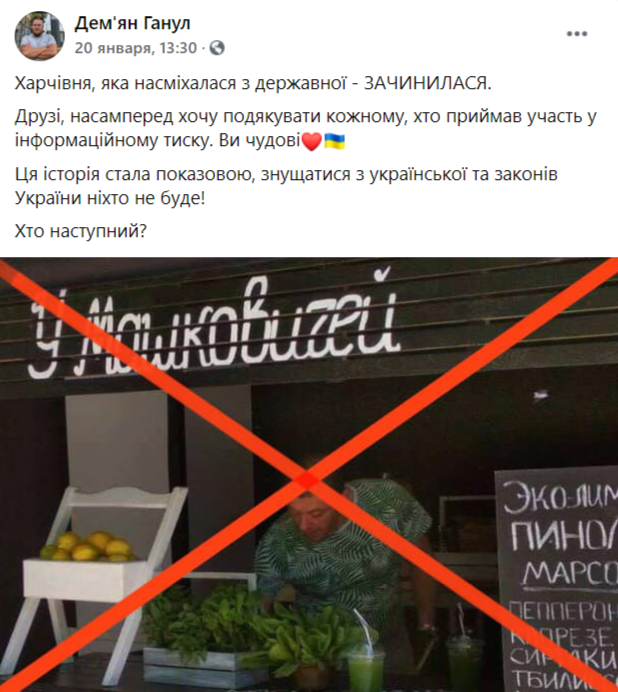 После этого поста остальные сторонники Стерненко и Ганула заявили, что заведение ждет расправа за издевательство над украинским языком. Хоть закон не прописывает никаких требований к грамотности и разрешает использовать даже суржик.