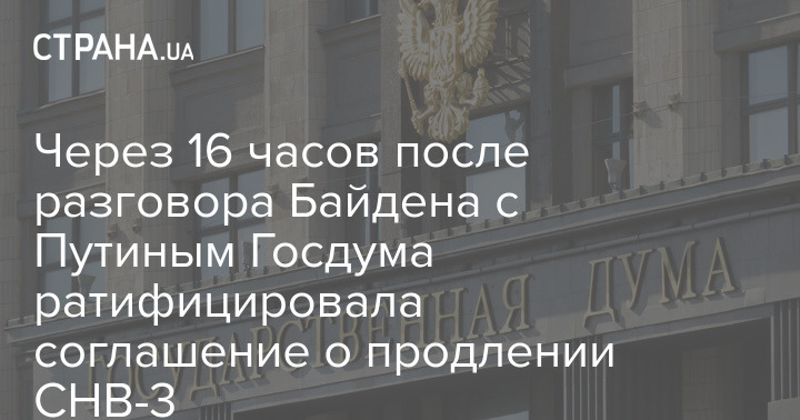 Госдума ратифицировала соглашение о продлении договора о мерах по дальнейшему сокращению и ограничению стратегических наступательных вооружений между Россией и США, о котором говорили по телефону президент США Джо Байден лидер РФ Владимир Путин. Документ будет действителен до 5 февраля 2026 года.