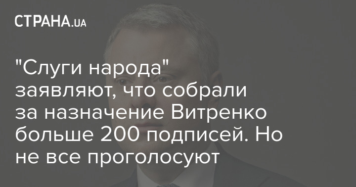 Глава партии "Слуга народа" Александр Корниенко сообщил, что за назначение Юрия Витренко есть уже больше 200 подписей от депутатов фракции президента.
