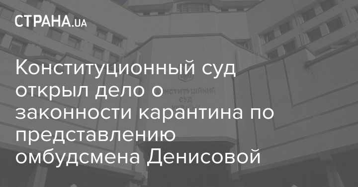 "Конституционный суд открыл производство по конституционному представлению уполномоченного Верховной рады Украины по правам человека относительно конституционности некоторых положений законодательства в сфере здравоохранения, в том числе и тех, которые представляют собой правовое основание для введения Кабинетом министров карантинных ограничений", - написала Совгиря.