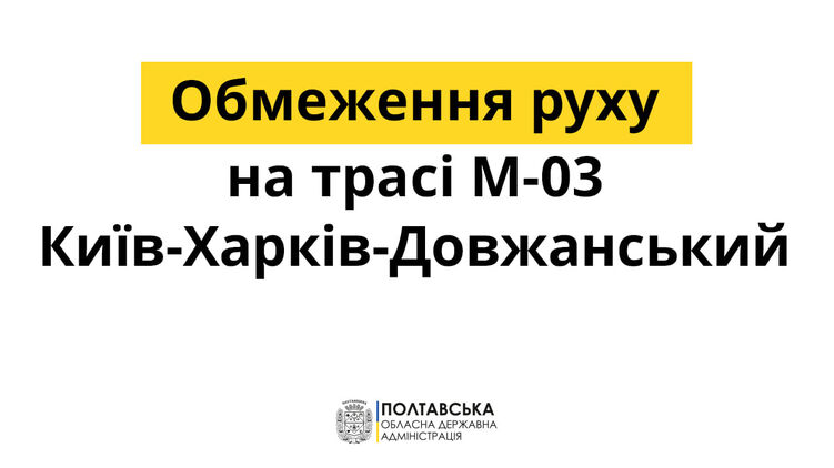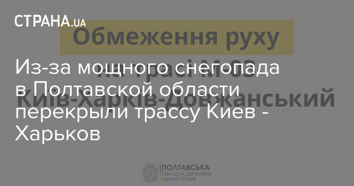 "С 23:00 27 января временно ограничено движение грузовых автомобилей на дороге М-03 Киев - Харьков - Довжанский через Полтавскую область, от границы с Харьковской областью до границы с Киевской, в направлении столицы.