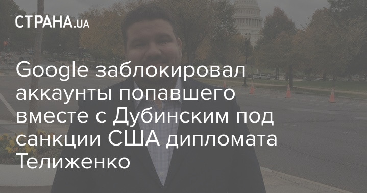 Бывший дипломат Андрей Телиженко, против которого недавно ввели американские санкции, сообщил, что его аккаунты в Google заблокированы.