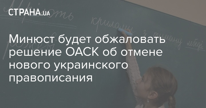 Министерство юстиции Украины считает незаконным решение Окружного административного суда Киева (ОАСК) об отмене постановления Кабмина о новой редакции украинского правописания. Ведомство будет его обжаловать.
