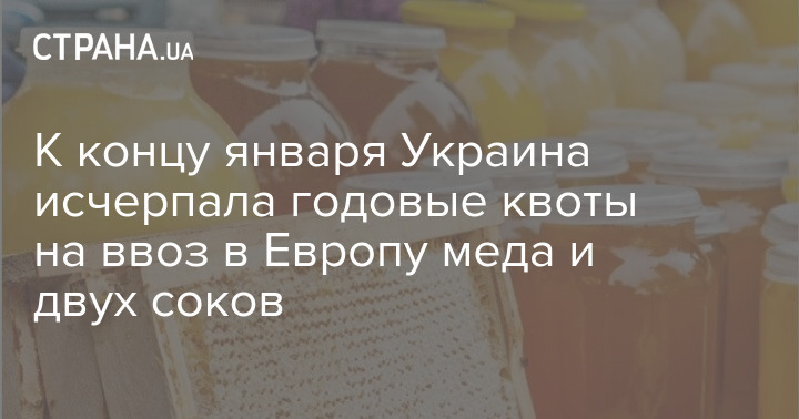 В первый же месяц года Украина исчерпала выделенные на 2021-й квоты на беспошлинные поставки в страны Европейского Союза меда, виноградного и яблочного соков. Такие данные по состоянию на 25 января приводит Украинский клуб аграрного бизнеса.