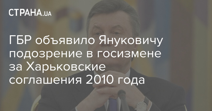 Следователи ГБР по согласованию с прокурорами Офиса генерального прокурора сообщили о подозрении в государственной измене (ч.1 ст. 111 УК Украины) бывшему президенту Украины Виктору Януковичу. Поводом стало заключение Харьковских соглашений 2010 года, по которым продлевался срок пребывания Черноморского флота РФ в Севастополе в обмен на скидку на газ.