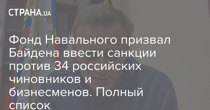 Фонд по борьбе с коррупцией (ФБК) российского оппозиционного политика Алексея Навального, в поддержку которого в РФ сегодня пройдут митинги, в письме президенту США Джо Байдену, предоставил список из 34 человек, против которых стоит ввести санкции, при этом 7 из них уже находятся в санкционном списке Вашингтона.
