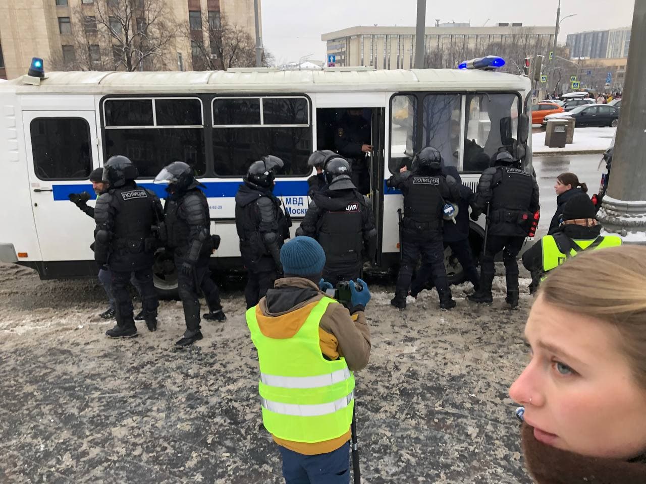 11:42 Автобус, куда "грузят" сторонников Навального.