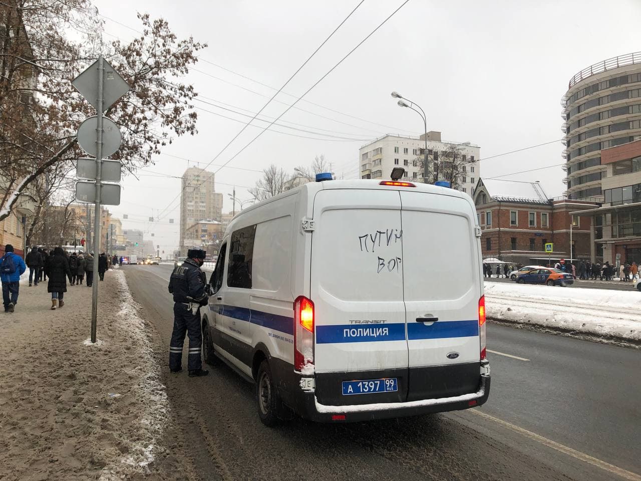 15:08 На полицейской машине кто-то нацарапал "Путин вор".