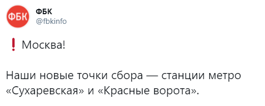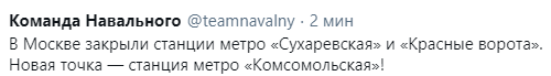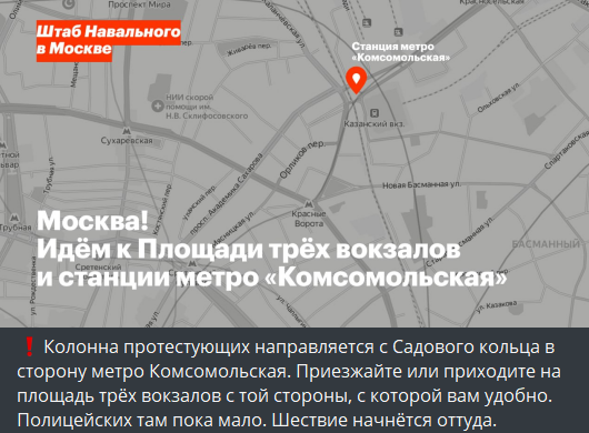 12:30 У Навального заявили, что от метро Комсомольская пойдут в сторону станции Красносельская. Это еще дальше от центра.
