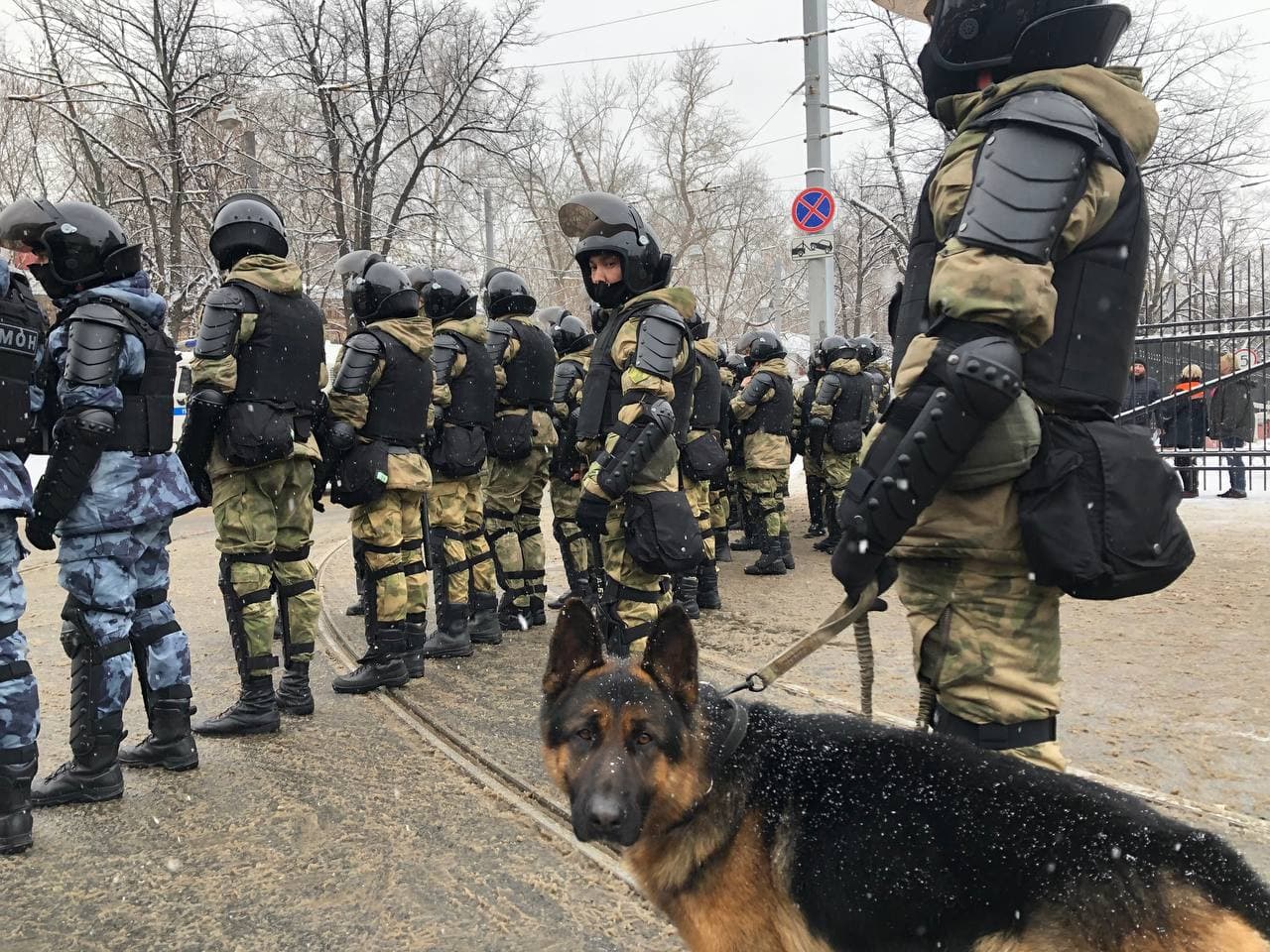 14:00 Журналистов пустили за кордон и разрешают подходить к силовикам. А также их псам.