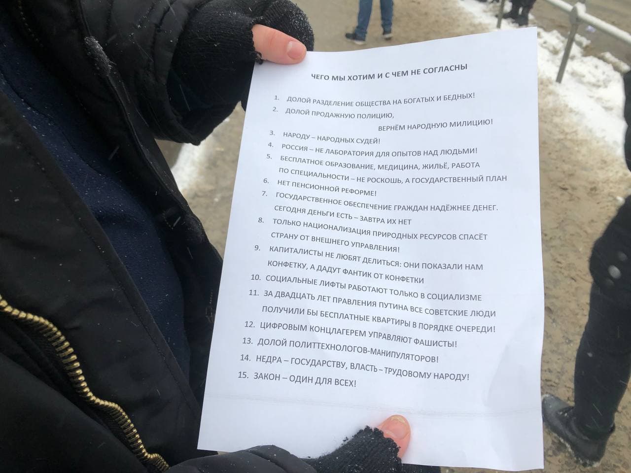 14:58 Требования акции за Навального. Судя по списку - это выдержка из программы коммунистической партии.