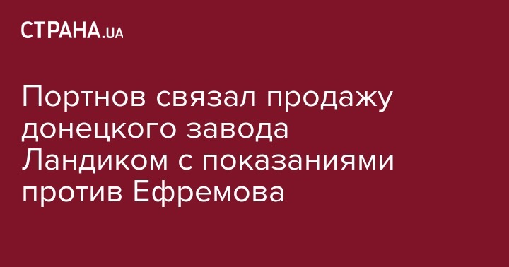 Валентин Ландик смог продать свой донецкий завод "Норд" россиянам благодаря показаниям его младшего брата Владимира против Александра Ефремова. Об этом на своей странице в социальной сети Facebook пишет известный юрист Андрей Портнов.