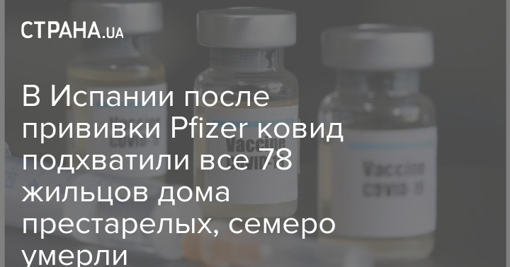 В Испании семеро жителей центра для престарелых в городе Толедо, Лагартера, скончались после заражения коронавирусом и еще 71 человек инфицирован Covid-19. Это произошло после того, как обитателей центра для престарелых привили первой дозой вакцины Pfizer. Об этом сообщает Еuropapress.