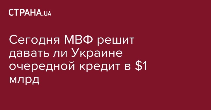 Сегодня совет директоров ключевого кредитора Украины Международного валютного фонда (МВФ) после более чем годичного перерыва вновь рассмотрит вопрос выполнения нашей страной программы реформ, утвержденной в марте 2015 года. По итогам рассмотрения, МВФ примет решение по поводу предоставления Киеву очередного, третьего по счету, кредитного транша, размер которого по предварительным оценкам составит порядка 1 млрд долл. Об этом сообщает УНИАН.