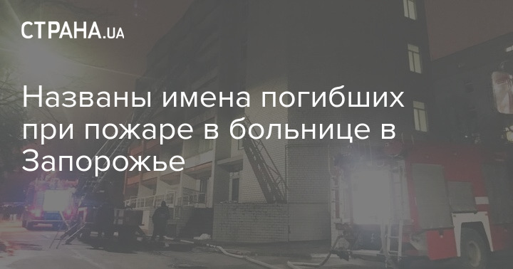 Названы имена погибших при пожаре в больнице в Запорожье