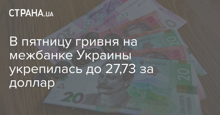 По данным Нацбанка Украины, справочный курс гривни на межбанке в пятницу укрепился до 27,78 грн/$1 с 27,90 грн/$1 в четверг.
