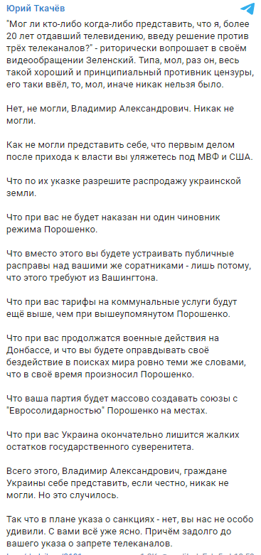 1. Зеленский сказал, что он уже 20 лет на телевидении и ненавидит цензуру. Поэтому раз даже он согласился закрыть СМИ, то основания действительно есть.