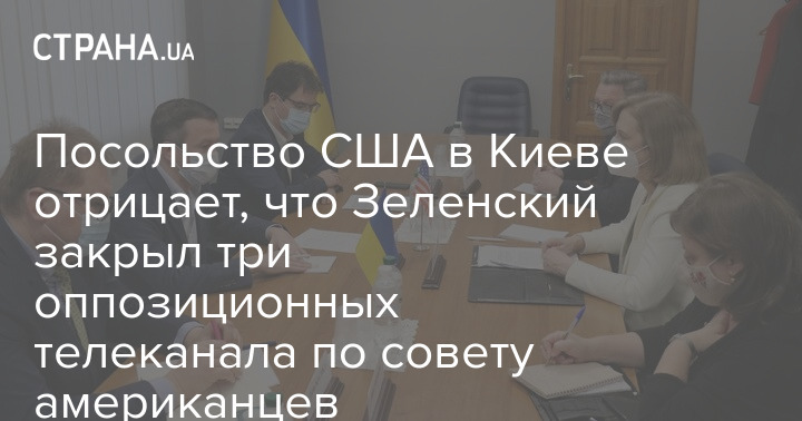 Посольство США в Киеве опровергло информацию о том, что стоит за санкциями "112 Украина", NewsOne и ZIK и советовало президенту Владимиру Зеленскому закрыть эти оппозиционные телеканалы.