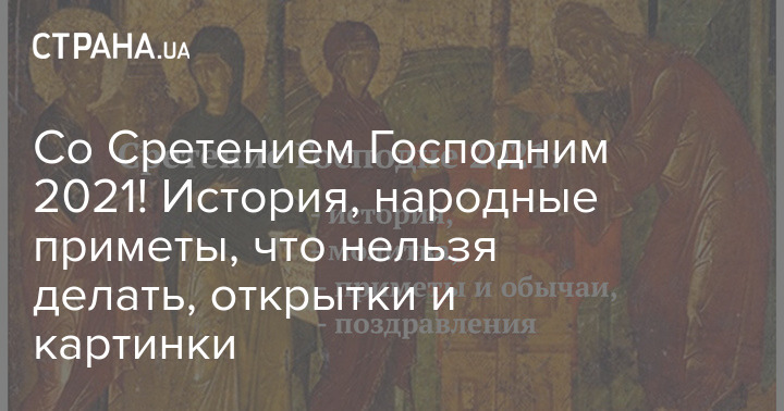 Сегодня, 15 февраля, отмечается Сретение Господне. "Страна" публикует краткое описание праздника, народные примеры, что можно и нельзя делать. Мы размещаем молитву, поздравления в стихах и открытках.