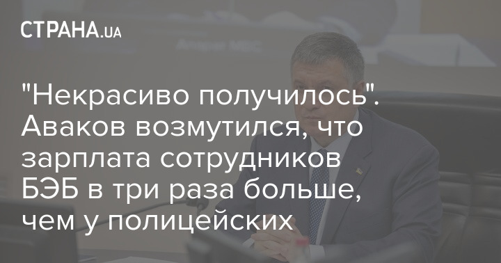 Глава МВД Арсен Аваков пожаловался главе профильного Комитета Рады на то, что зарплата сотрудников МВД в три раза ниже, чем та, которую нардепы прописали для сотрудников новосозданного Бюро экономической безопасности (БЭБ).