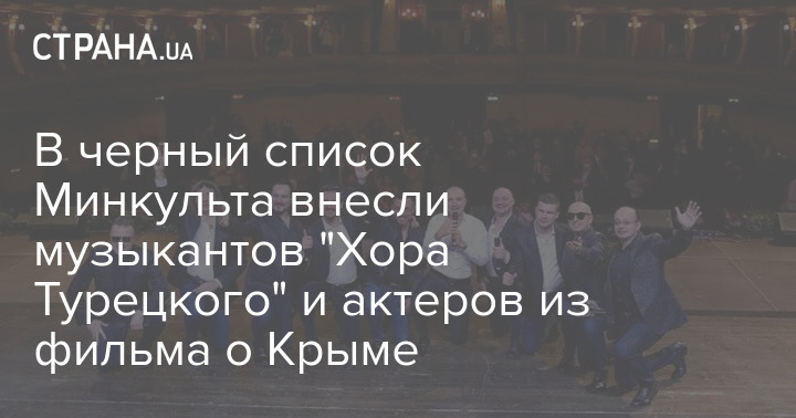 В черном списке Минкульта оказались участники группы "Хор Турецкого" - Алексей Александров, Павел Бердников, Олег Бляхорчук, Константин Кабанов и Михаил Кузнецов. А также актеры Роман Курцын и Евгения Лапова, которые снимались в фильме "Крым".
