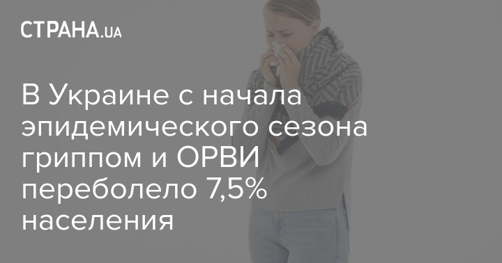 В течение первой недели февраля в Украине гриппом и острой респираторной вирусной инфекцией переболели 121 550 человек, уровень заболеваемости ниже эпидемического порога. Всего с начала эпидсезона в стране (с 28 сентября) болезнь перенесли уже 7,5% населения.