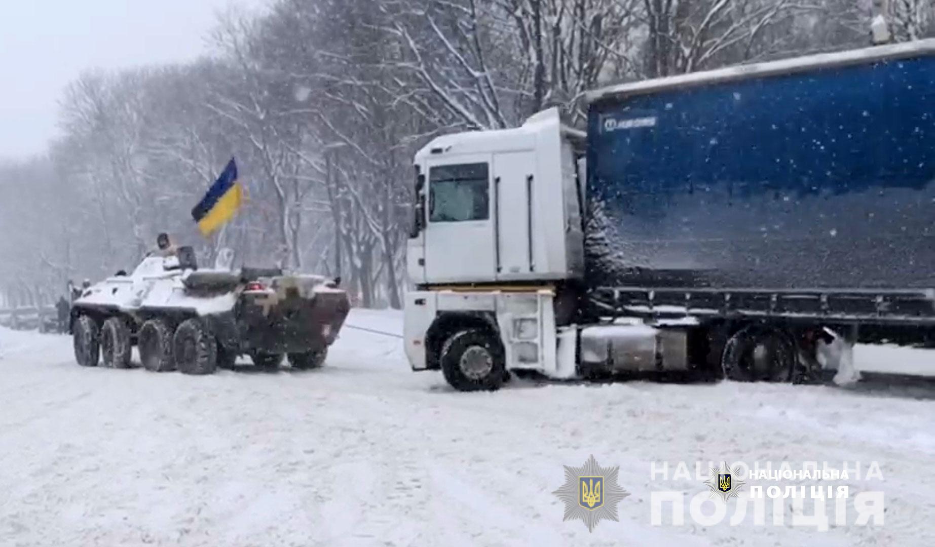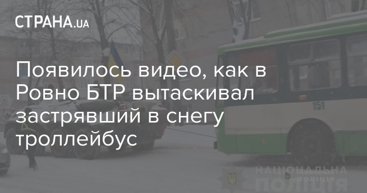 В Ровно с помощью БТР вытащили троллейбус, который застрял в снегу, фото: Нацполиция