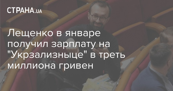 Экс-журналист, бывший нардеп, а теперь член наблюдательного совета "Укрзализныци" Сергей Лещенко получил за январь более 332 тысяч гривен зарплаты. Такая сумма указана в его электронной декларации, поданной 11 февраля 2021 года.
