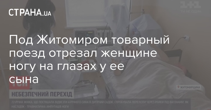 В городе Овруч Житомирской области 22-летняя женщина попала под товарный поезд, который отрезал ей ногу. Драма случилась на глазах у ее четырехлетнего сына, которого овручанка везла в детский сад.