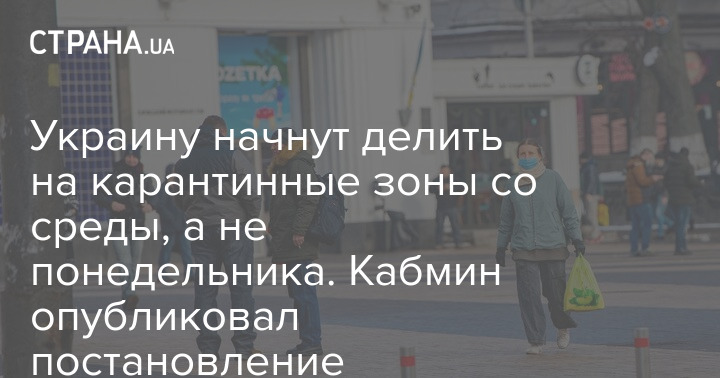 Украину начнут делить на карантинные зоны со среды, а не понедельника. Кабмин опубликовал постановление