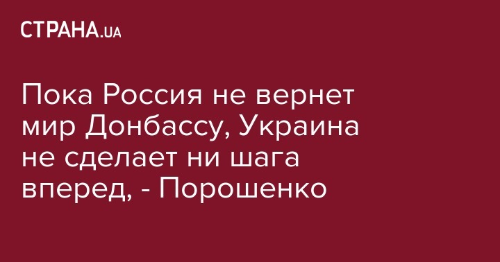 Пока Россия не вернет мир Донбассу, Украина не сделает ни шага вперед, - Порошенко