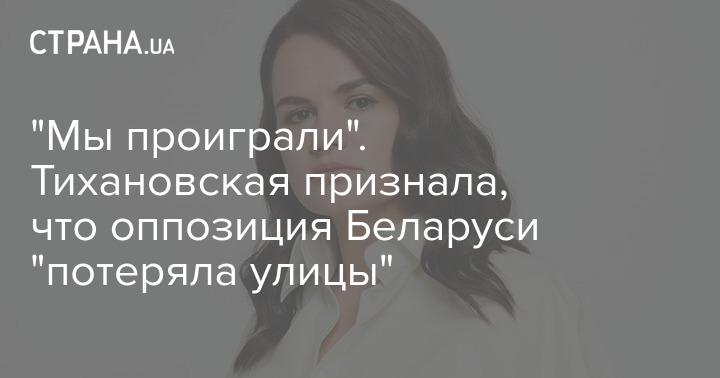 Лидер оппозиции Беларуси Светлана Тихановская заявила, что протестное движение проиграло, поскольку "потеряло улицы". Из-за этого оно лишилось возможности бороться с режимом Александра Лукашенко.