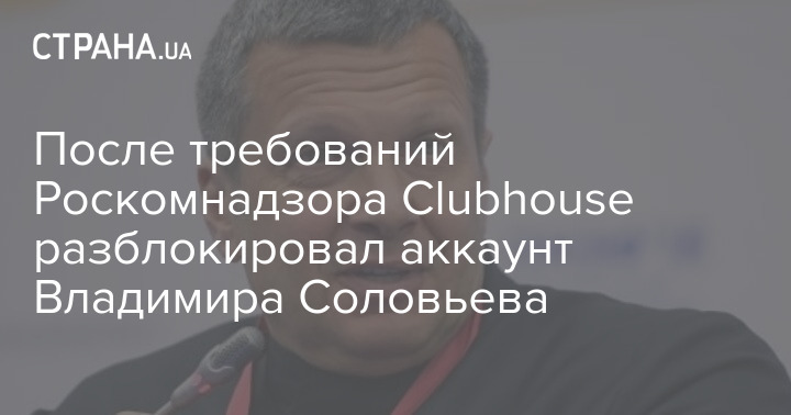 После требований Роскомнадзора Clubhouse разблокировал аккаунт Владимира Соловьева