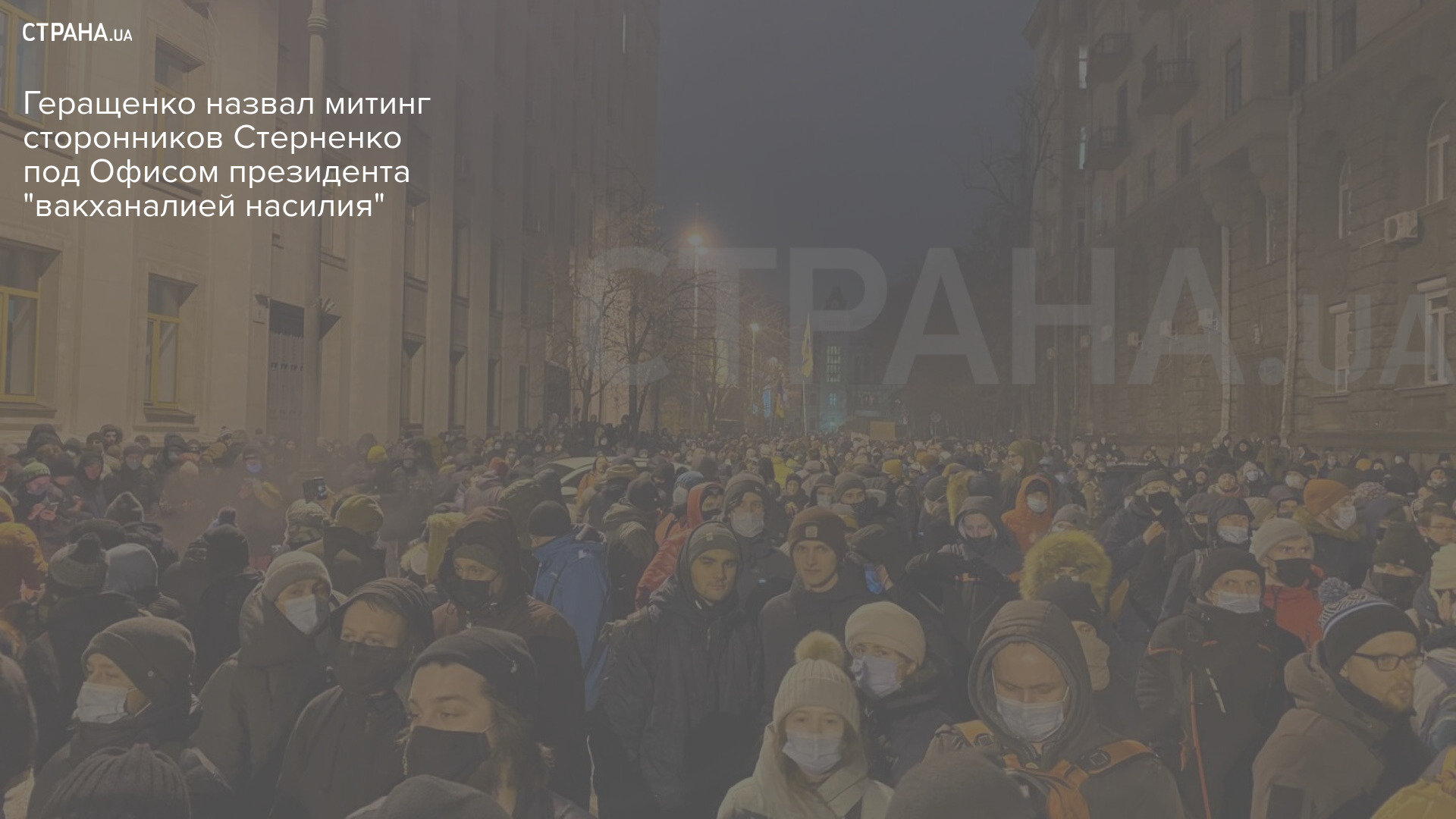 Заместитель министра внутренних дел Украины Антон Геращенко прокомментировал акцию протеста сторонников осужденного на семь лет Сергея Стерненко. По его словам, митинг, который прошел вечером 23 февраля возле здания Офиса президента в Киеве, нельзя назвать мирным. В то же время Геращенко рассказал, что всех задержанных в результате потасовок на Банковой уже отпустили.