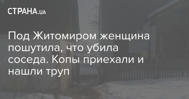 Под Житомиром нетрезвая жительница поселка Мирополье позвонила в полицию и сообщила, что убила соседа. Когда же правоохранители приехали, женщина заявила, что пошутила. Однако полицейские все же решили наведаться в дом соседа и обнаружили, что его уже давно не было дома.